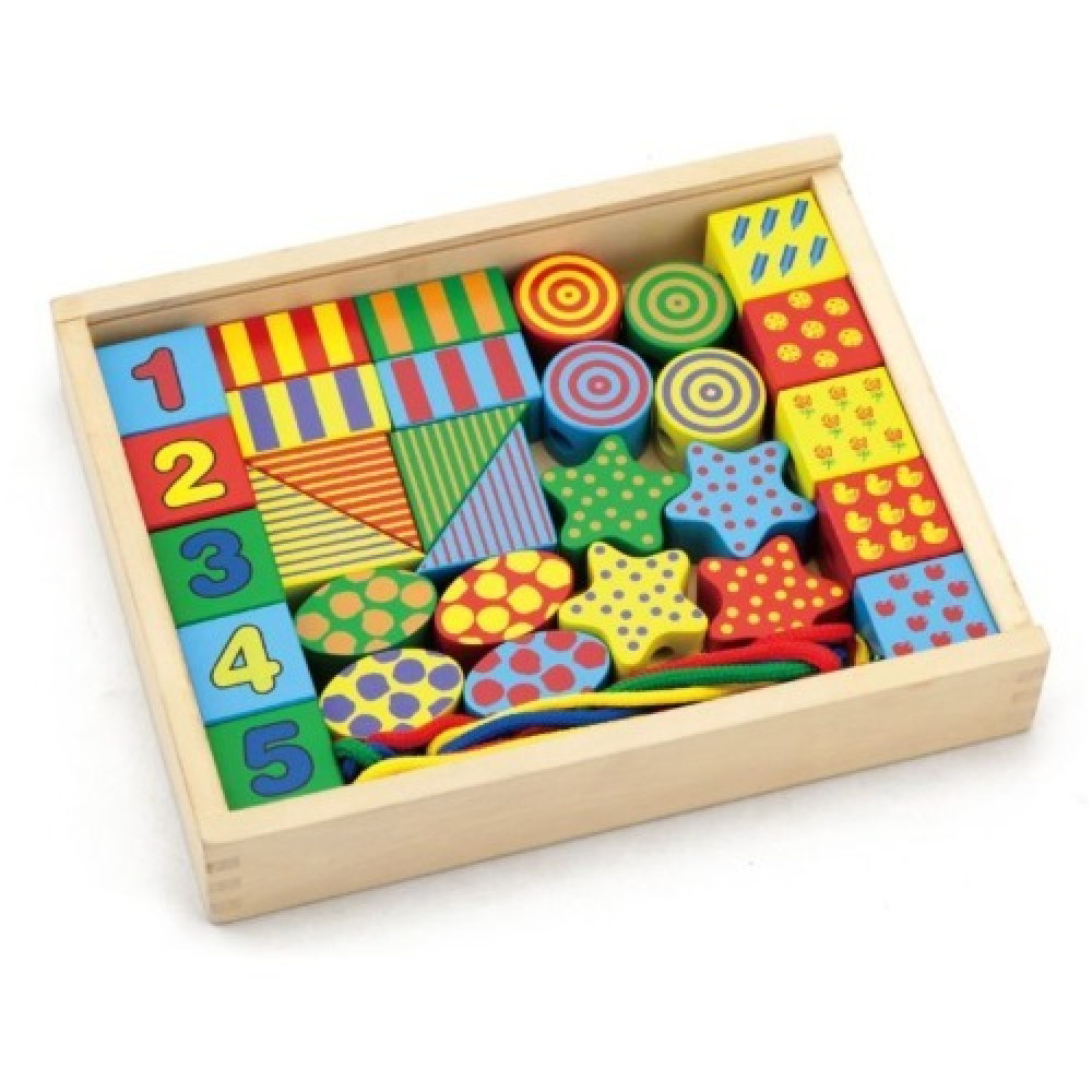 هذا الصندوق الجامبو من الخرز الخشبي ذو الألوان الزاهية تعليمي بالإضافة إلى المتعة! يمكن للأطفال إنشاء تصميمات مختلفة لا حصر لها من خلال ربط الخرز الخشبي على طول الدانتيل والجمع بين الأشكال والألوان المختلفة. يمكن تخزين جميع الخرزات والأربطة في صندوق خشبي بغطاء منزلق.