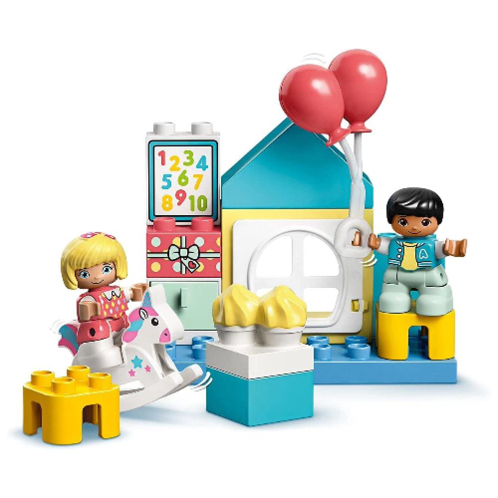 وصف المنتج : ليغو - تركيب غرفة العاب الاطفال تتميز مجموعة لعبة البناء بتصميم غرفة للألعاب من ليغو دوبلو (10925) مليئة بإمكانيات لعب الأدوار الخيالية. حتى صندوق الورق المقوى بتصميم على شكل منزل ويعد جزء من تجربة اللعب. مع الألوان الحديثة والميزات الرائعة والشخصيات المفصلة، ستشارك العقول والأيدي الصغيرة وستستمتع بها لساعات! يحسّن الأطفال مهاراتهم الحركية الدقيقة والقصص الخيالية التي يلعبون الأدوار بينما ينضم إليهم مجسمات بنت وولد في غرفة اللعب. توفر منطقة اللعبة التظاهرية المدرسية الكثير من الفرص للتعلم الأساسي في مرحلة ما قبل المدرسة. تحتوي هذه اللعبة على الأيس كريم والهدايا والبالونات للاحتفال مع الدمى بعيد الميلاد! مجموعات ألعاب الأطفال الخيالية من ليغو دوبلو تضع اللعب والتعبير الذاتي والتعلم مفتوح ومتاح للأيدي صغيرة. تعمل هذه الألعاب التعليمية للأطفال الصغار وسن ما قبل المدرسة على تشجيع التعلم من خلال اللعب التظاهري والشخصيات ذات الصلة والبناء الإبداعي. مقاسات لعبة غرفة الألعاب: ارتفاع يزيد عن 3 انش (10 سم) وبعرض 4 انش (12 سم) وبعمق 2 انش (6 سم). تحتوي على 16 قطعة. المواصفات : أبعاد المنتج : 8 x 16.2 x 20.6 سم وزن المنتج مع العبوة : 360 جرام العمر الموصى به من قبل الشركة المصنعة : سنة ونص فما فوق مادة : بلاستيك اللون : متعدد الألوان