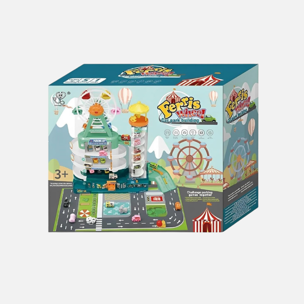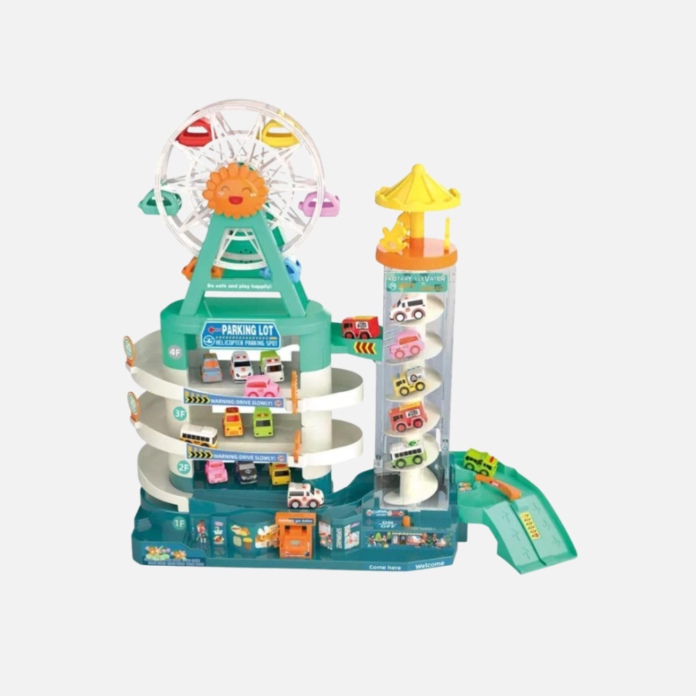 تخيلوا أن طفلكم يدير مدينة صغيرة نابضة بالحياة، حيث ترتفع السيارات إلى الأعلى في مصعد دوّار، وتدور حول عجلة فيريس مليئة بالمغامرات... في كل لحظة، يكتشف شيئًا جديدًا، يتعلم، ويتخيل، ويبتسم! إنها ليست مجرد لعبة، بل عالم مليء بالإبداع والاكتشاف ينتظره.