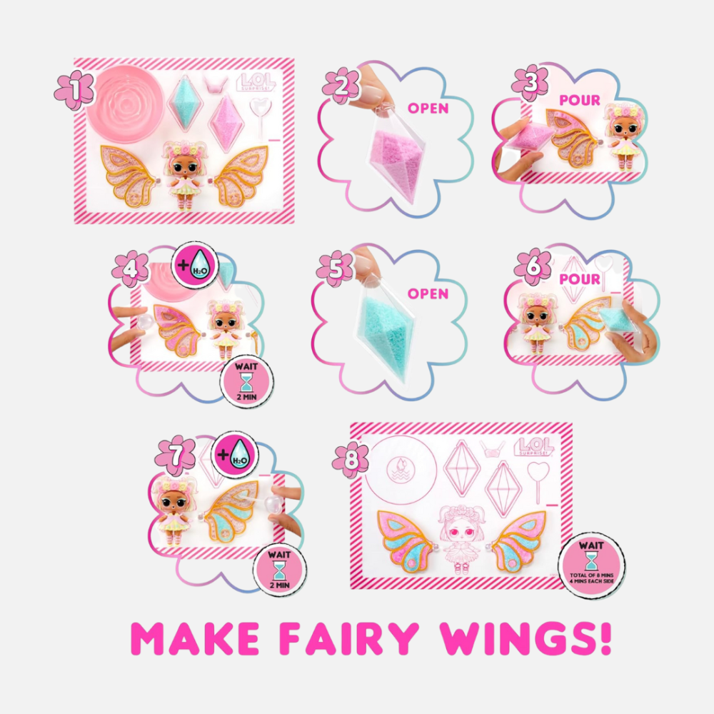 ✨ شرارة الخيال دمى "LOL Surprise Fairies" ليست مجرد لعبة، بل دعوة مفتوحة لطفلك ليصنع عوالمه الخاصة، حيث الجنيات تطير، وتتبادل الأجنحة، وتكتشف عوالم سحرية. تصميم الأجنحة القابلة للتخصيص يعزز الإبداع ويتيح للطفل التعبير عن شخصيته الفنية الفريدة.