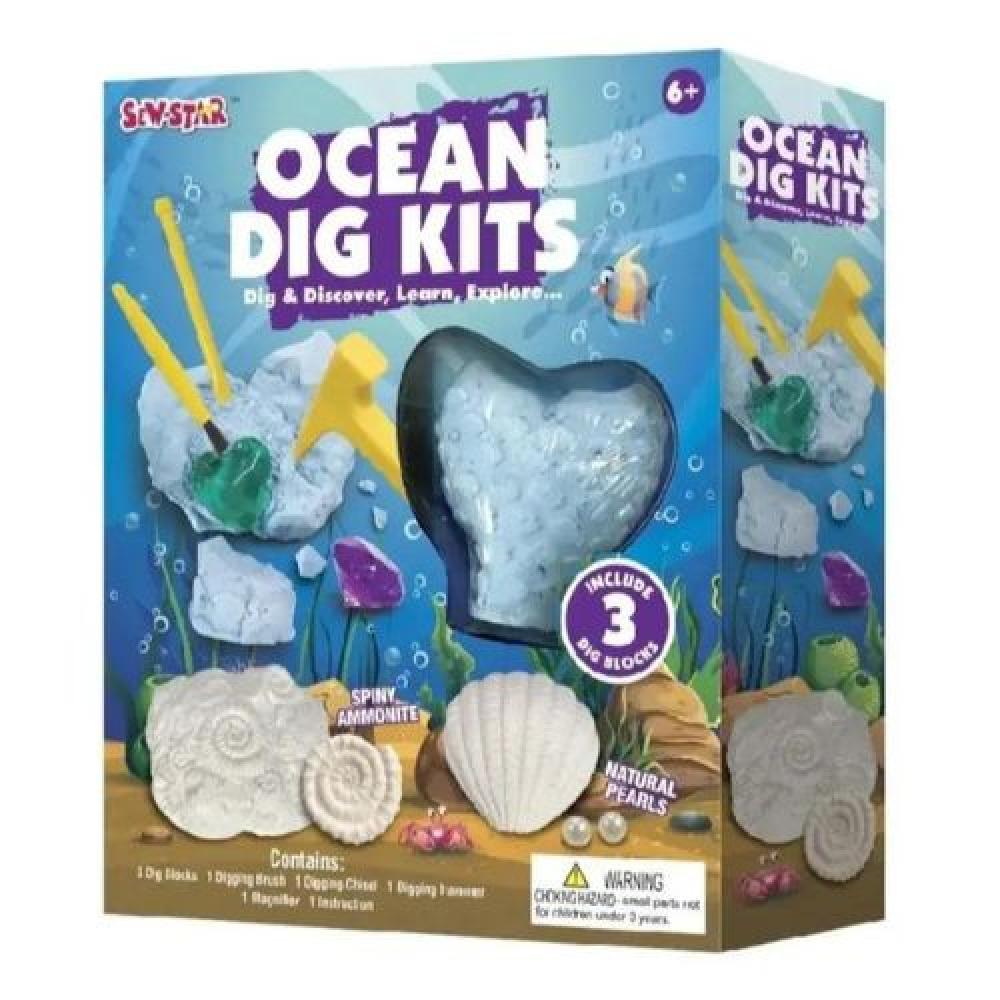 مجموعة أدوات حفر مخلوقات بحرية سهلة الحفر للأطفال، علم الآثار، علم الحفريات، العلوم التعليمية. تأتي مجموعة حفر نجم المحيط مع 3 كتل حفر، فرشاة حفر واحدة، إزميل حفر واحد، مطرقة حفر واحدة، عدسة مكبرة واحدة مع تعليمات. إنها هدية رائعة للعطلات/هدية للأطفال. من المستحسن وضع بعض المناشف الورقية على الطاولة أولاً. ضع كتل الطين على الطاولة، واستخدم الإزميل لاستخراج الطين واستخدم الفرشاة لإزالة الغبار. يمكنك بعد ذلك استخراج الكنوز الموجودة بالداخل، وشطف الطين المتبقي على الآثار بالماء النظيف. يمكنك نقع كتل الطين في الماء لتسهيل عملية الحفر. تجربة سهلة ومثيرة للاهتمام!