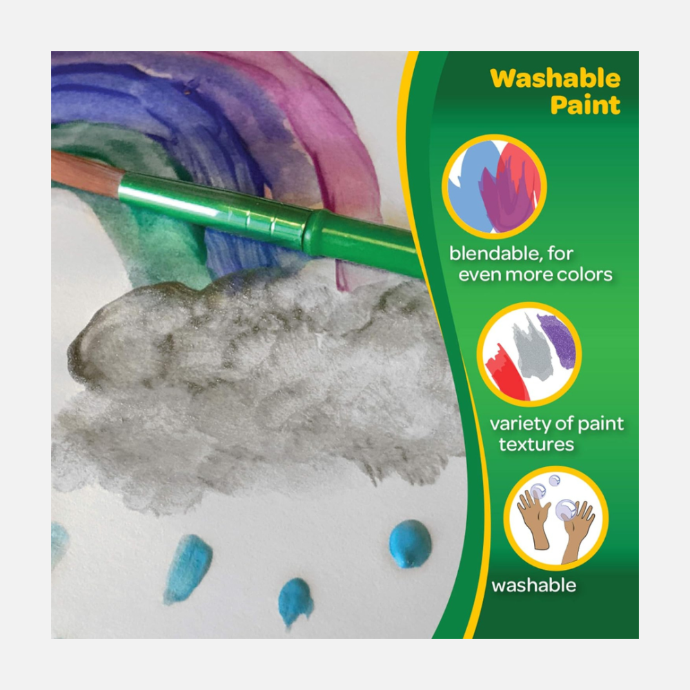 مجموعة ألوان كرايولا القابلة للغسل تمنح طفلك الحرية المطلقة للتعبير عن إبداعه، مع راحة بالكِ كوليّ أمر، إذ يمكن غسل الألوان بسهولة من اليدين والملابس والأسطح. مثالية للأنشطة المدرسية، الهوايات الفنية، والهدايا المميزة.
