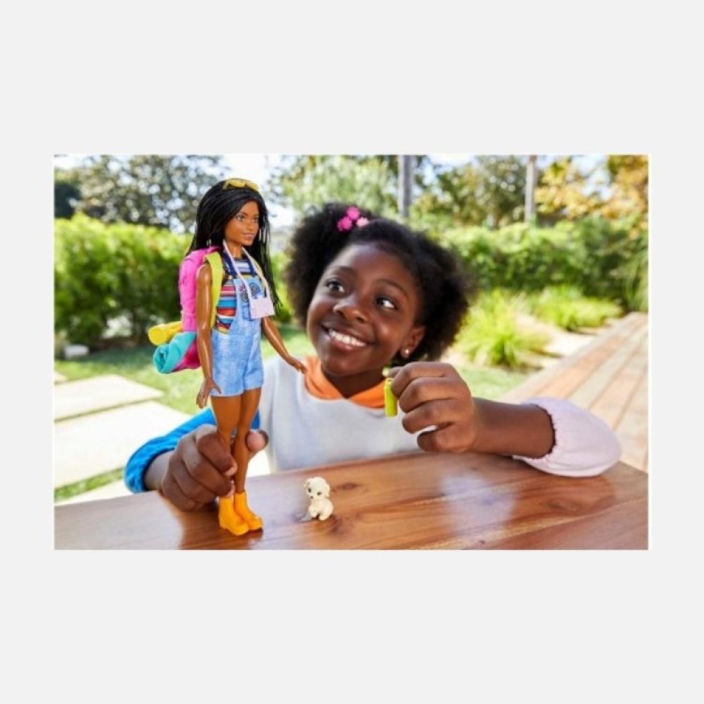 حين تشرق شمس الصباح في الغابة المليئة بالألوان، تستعد "بروكلين" باربي لرحلتها الجديدة مع جروها الصغير! 🌞
