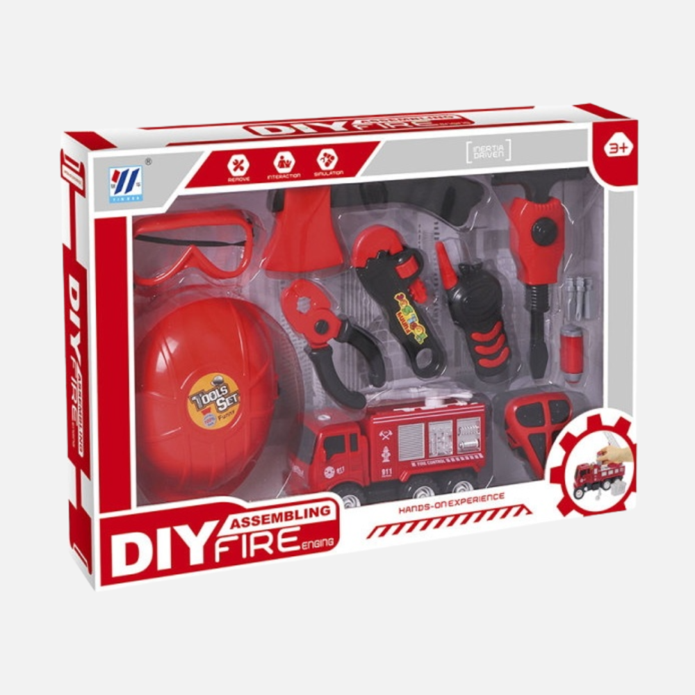 ✨ شرارة الخيال دع طفلك يعيش أجواء رجال الإطفاء الحقيقيين! هذه المجموعة تمنحه تجربة واقعية من خلال خوذة الحماية، شاحنة الإطفاء القابلة للتجميع، والأدوات المتنوعة التي تفتح أمامه أبواب اللعب التخيلي بلا حدود.