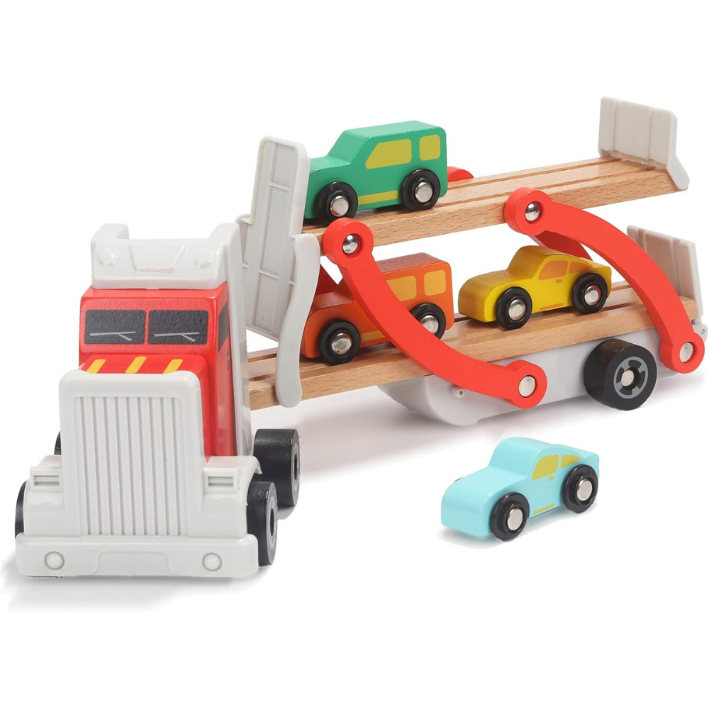 توب برايت - شاحنة نقل السيارات الخشبية - 4 سيارات صغيرة